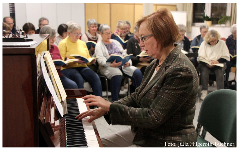 Chorsingen bzw. -leitung ist für Frau Rauscher eben nicht nur irgendeine dienstliche Verpflichtung, sondern ein echtes persönliches Anliegen– das haben wir feststellen dürfen. Nicht zuletzt aus diesem Grund hat sie sich monatelang von Troisdorf nach Altenkirchen auf den Weg gemacht, oder sie reiste gar von noch weiter entfernten Terminen an, die sie für die EKiR wahrnehmen musste: Dienstagabends war sie pünktlich im Martin -Luther-Saal!